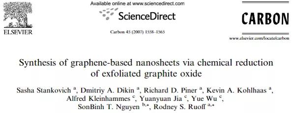 該文2007年由美國西北大學的SonBinh T. Nguyen和Rodney S. Ruoff教授等人發(fā)表于Carbon。截至2021年2月17日,該文累計被引10,520次。