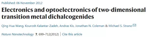 該文2011年由瑞士洛桑聯(lián)邦理工學院A. Kis教授等人發(fā)表于Nature Nanotechnology。截至2021年2月17日,該文累計被引9,140次。
