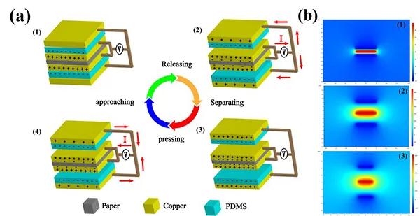 (b)使用COMSOL對MT-TENG的電極電位分布進(jìn)行了數(shù)值計算。