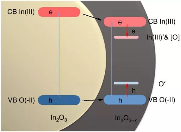 化學(xué)計量比氧化銦(In2O3)的納米構(gòu)造形式已經(jīng)被證明是二氧化碳?xì)庀嗉託浞磻?yīng)的高效催化劑。在光或者熱的幫助下,這些轉(zhuǎn)變都可得以推進(jìn);然而淺黃色氧化銦有限的光學(xué)吸收強度卻阻止其進(jìn)一步應(yīng)用發(fā)展。因此,為了更好地利用太陽能的光和熱,黑色的氧化銦可能具有更大的優(yōu)勢。