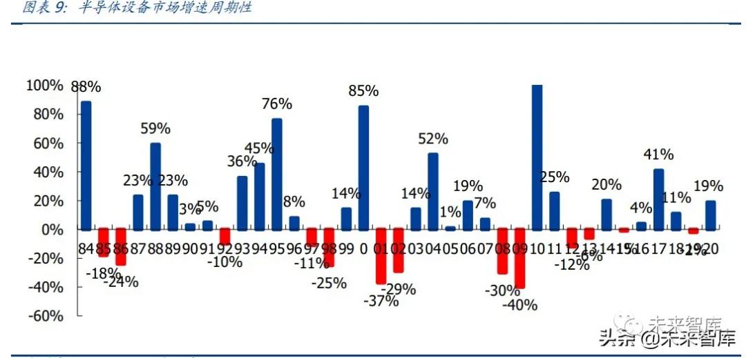 下游資本開支提升,半導(dǎo)體設(shè)備周期向上。伴隨著下游資本開支提升,設(shè)備廠商營業(yè) 收入增速從 2019Q2 觸底后逐漸回暖。2020Q1 由于疫情沖擊,產(chǎn)品發(fā)貨推遲,導(dǎo)致單 季度收入增速下調(diào)。以 ASML 為例,疫情后營收增速恢復(fù),2021Q1 半導(dǎo)體設(shè)備營收增 速更是達(dá)到 95.1%,ASML 表示下游對于先進(jìn)的光刻設(shè)備需求有增無減。