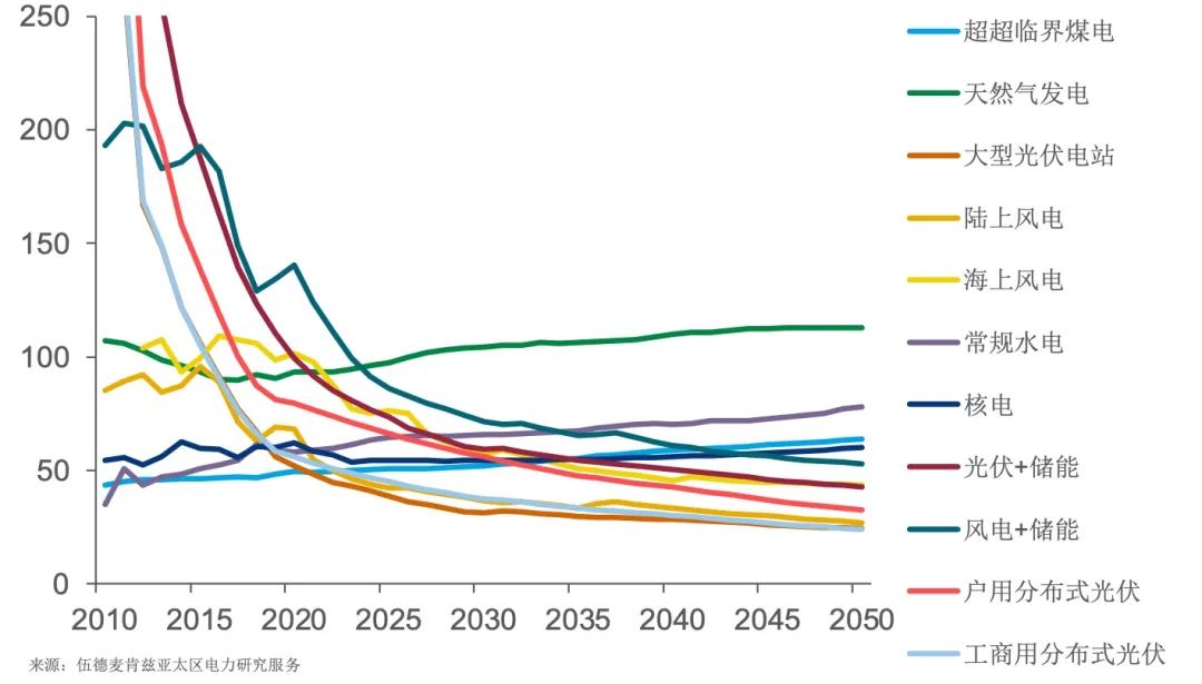 據(jù)國(guó)際能源咨詢公司伍德麥肯茲近期發(fā)布的報(bào)告,未來(lái)十年,火電的成本還將上升,光伏、風(fēng)電則有40%—50%的成本下降空間。2035年是一個(gè)分水嶺,屆時(shí)中國(guó)所有可再生能源發(fā)電的成本都將比煤電低。如果再加上為碳排放支付的費(fèi)用,煤電成本將高出10%—15%。