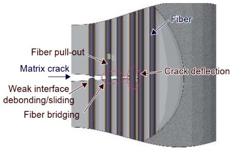 材料的失效類型主要包括斷裂、腐蝕和磨損等。 SiC/SiC 復合材料的失效主要表現(xiàn)為在載荷、高溫、異物沖擊、氧化、摩擦等單因素或多因素作用下發(fā)生的斷裂、腐蝕和磨損。 SiC/SiC 復合材料具有多種組分,每種組分相比 SiC 或六方氮化硼(h-BN)等純陶瓷材料有很大的不同,不同組分可以多種方式組成復合材料,因此 SiC/SiC 復合材料具有因材料組成和制備工藝而異的失效行為。同時,SiC/SiC 復合材料的服役環(huán)境十分復雜,已開展了很多高溫水氧或燃氣環(huán)境下的長時力學實驗,研究 SiC/SiC 復合材料在力、熱、水、氧以及高速氣流等綜合作用下的損傷演化和失效機理,以達到監(jiān)測 SiC/SiC 復合材料性能衰減并預測其剩余服役壽命的目的。由于 SiC/SiC 復合材料磨損失效行為的專門研究還比較少,本文重點討論 SiC/SiC復合材料的斷裂失效和腐蝕失效。