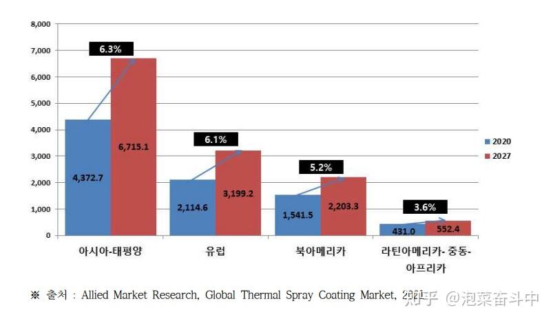 讓我們定睛來看一下,雖然等離子熱噴涂的全體市場(chǎng)占比不是最高的,但是它的增速卻是所有噴涂方法中最快的。達(dá)到了11.2%。