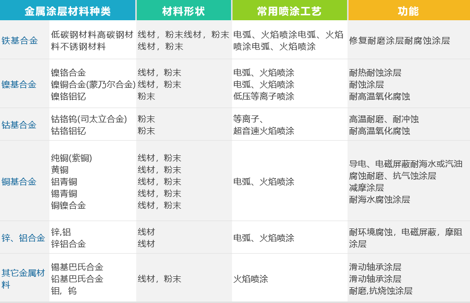 ▼常用金屬熱噴涂材料